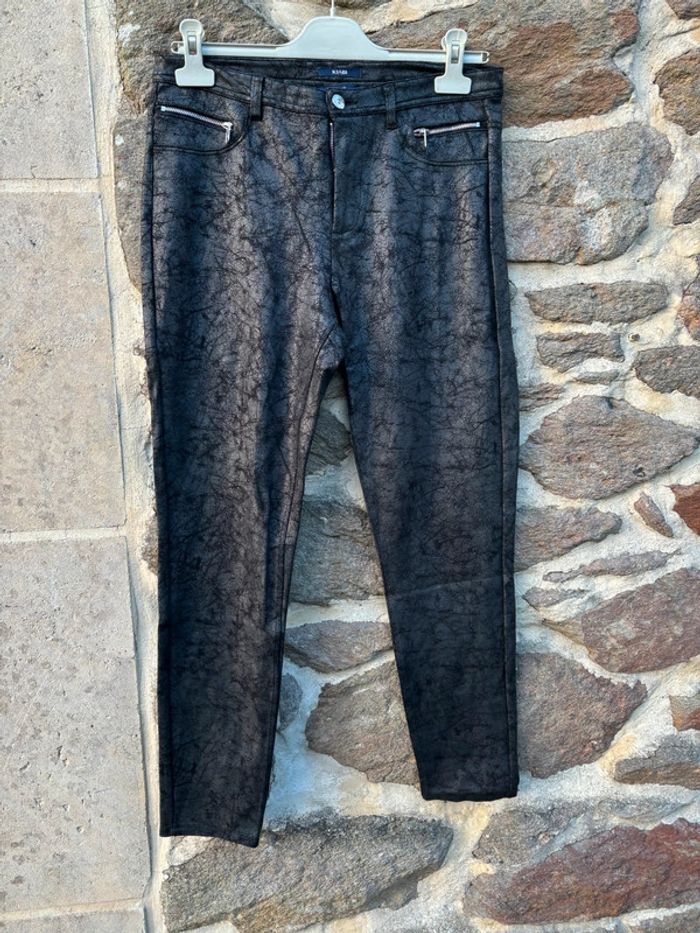 Pantalon de la marque Kiabi, en taille 42 coupe Skinny. Très bon état. Noir reflet argenté parfait pour les fêtes #pantalon Les vêtements femme taille XL et XXL ou 42-44 c’est par ici = #tailleXLXXLetou4244