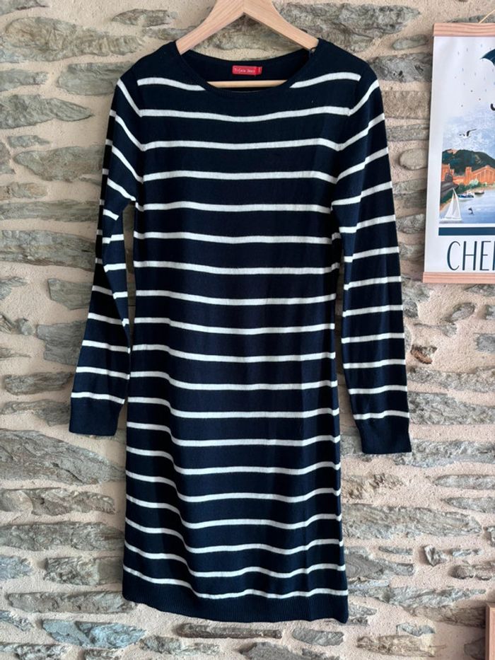 Robe pull bleu marine et blanche en taille 38 40 très bon état #robe #marinière Les vêtements femme taille M et ou 38 c’est par ici = #tailleMetou38