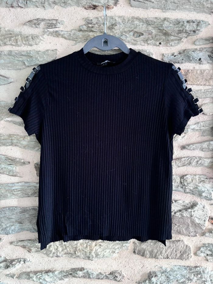 T-shirt noir Jennyfer en taille S Très bon état #tshirt Les vêtements femme taille S et ou 36 c’est par ici = #tailleSetou36