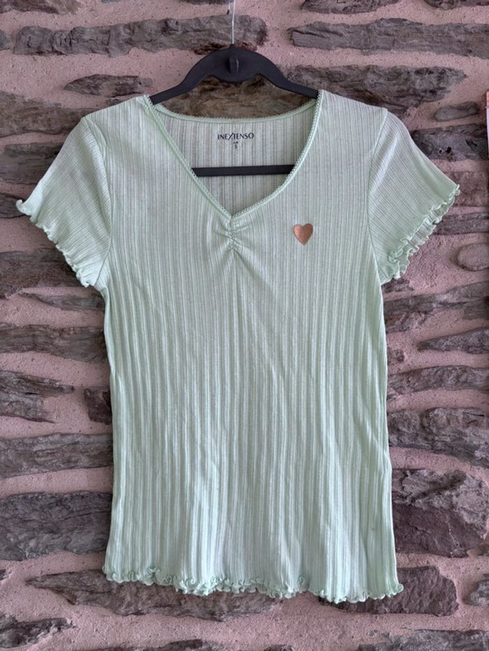 T-shirt vert pastel en taille S avec un petit cœur doré sur la poitrine en très bon état Les vêtements femme taille S et ou 36 c’est par ici = #tailleSetou36