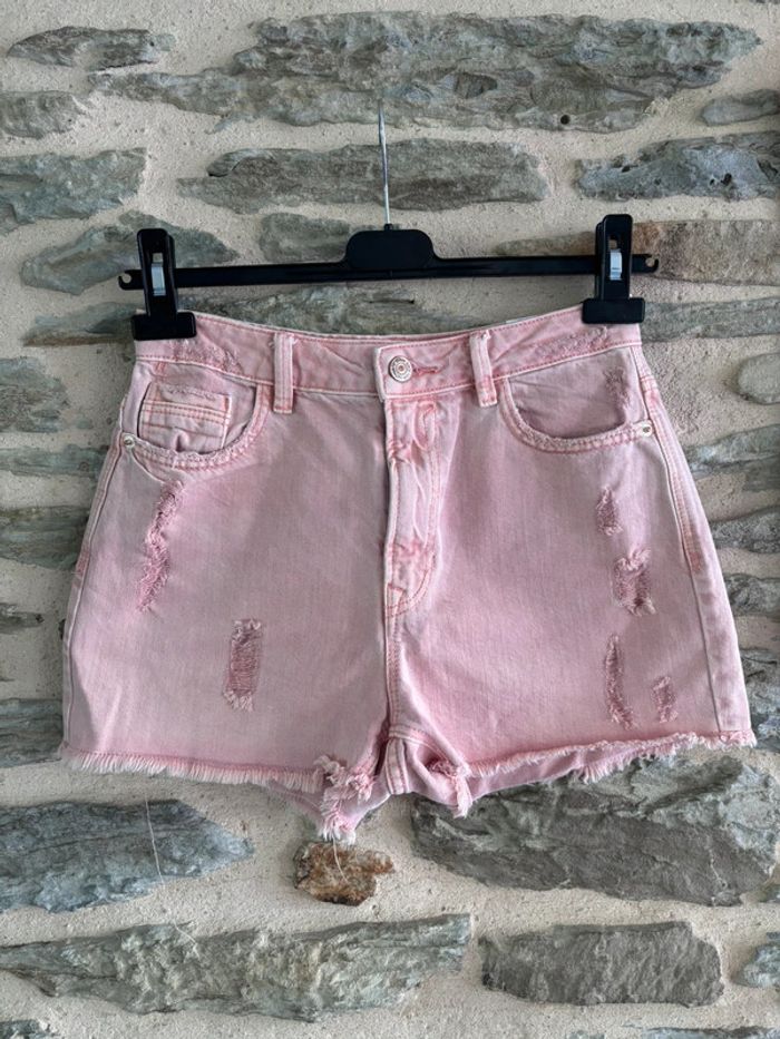 Short en jean rose, en taille 34 de la marque Pimkie en très bon état #short Les vêtements femme taille XXS XS / 32-34 c’est par ici = #taillexxsxs32et34
