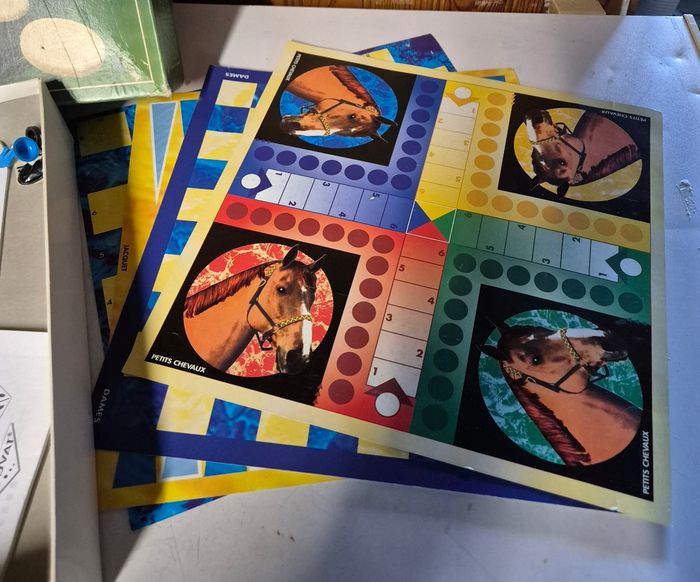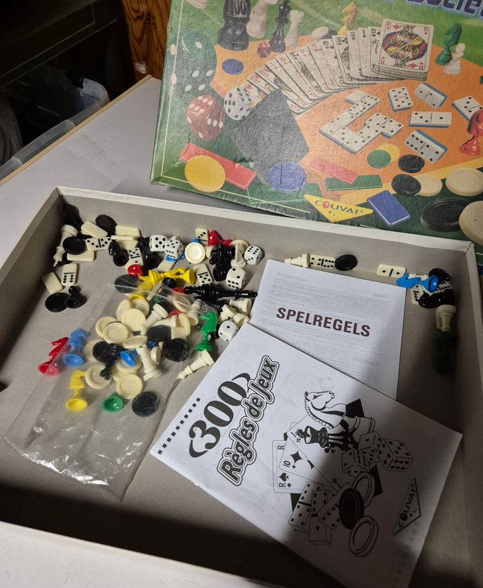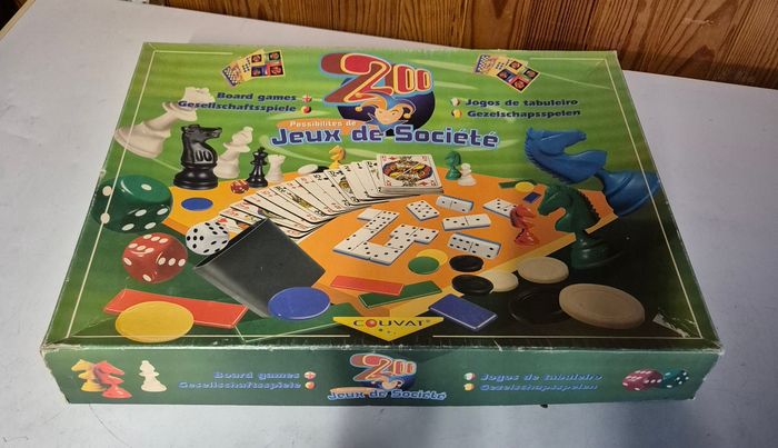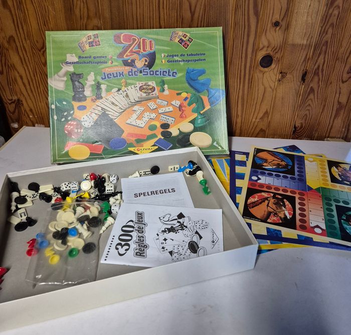 Boîte jeu de sociétés 200 jeux de sociétés différents possible Manque le pot noir pour lancer les des ainsi que les cartes à jouets. #jeudesociete #coffretmultijeux #200jeuxdesocietes #dames #petitschevaux