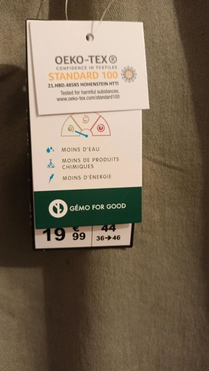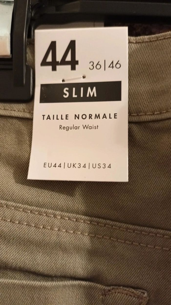 Bonjour je vend ce slim kaki taille 44 en très bon état, avec étiquettes, mis juste essayage, trop serrer et trop tard pour changer en magasin.