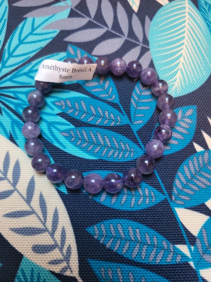 Bracelet boules 8mm sur bracelet élastique Pierres naturelles Améthyste
