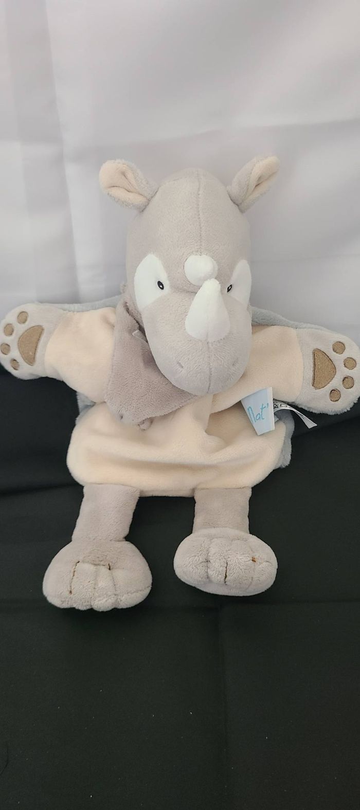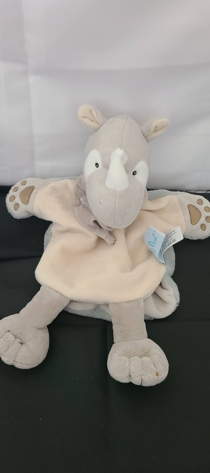 Marionnette Rhinocéros Gris Beige Savane BABY NAT’ - photo numéro 3