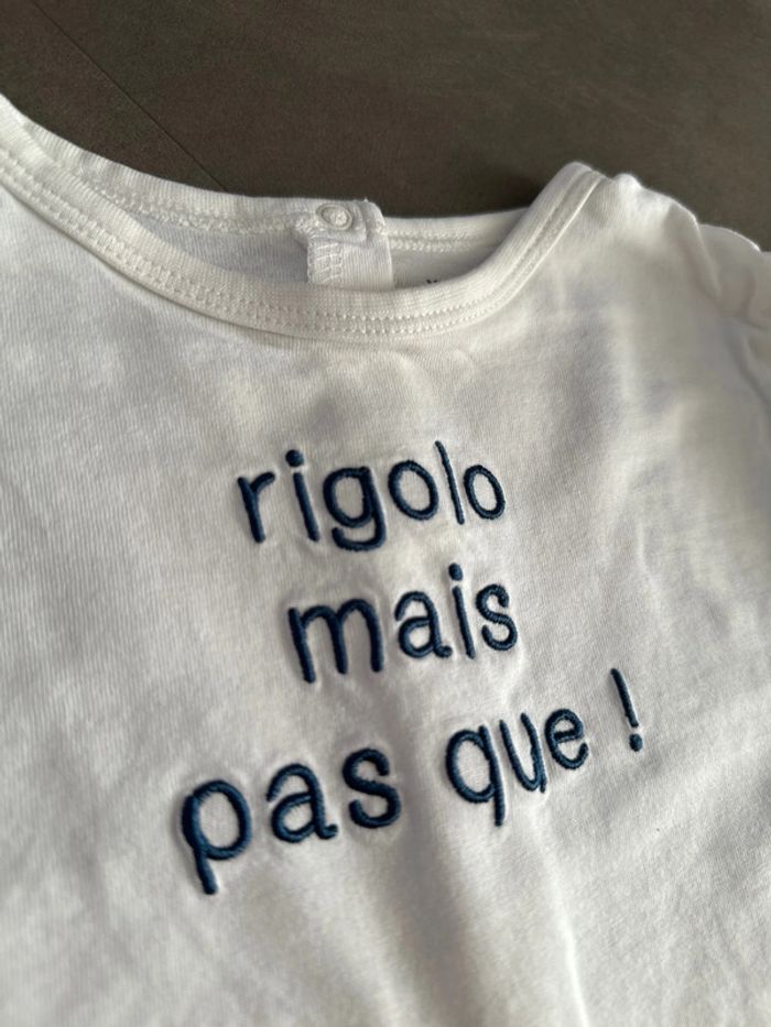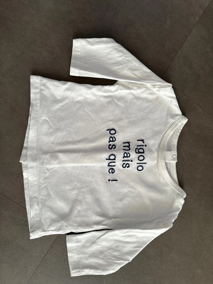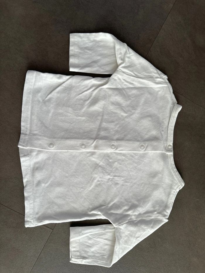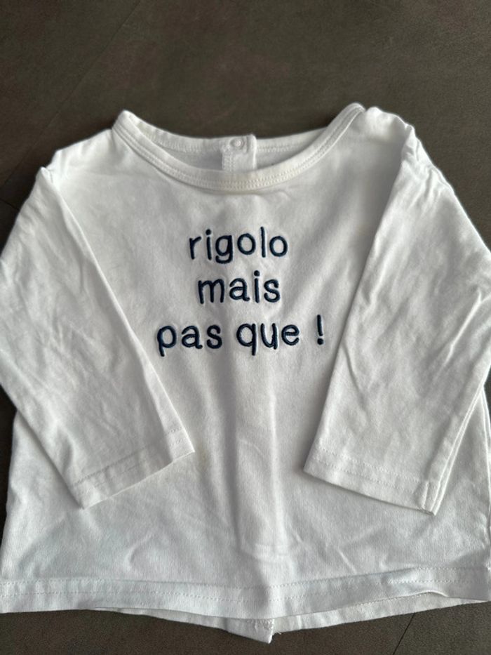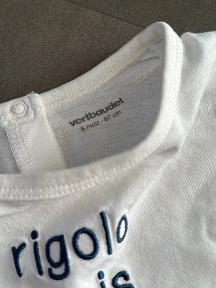Teeshirt manches longues blanc en 6 mois de marqué Vertbaudet. Très bon état, pas de tache ni trou constaté. #emireims6mois