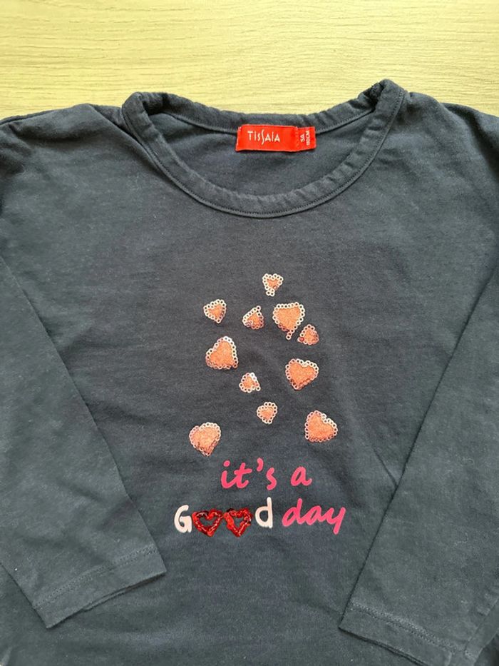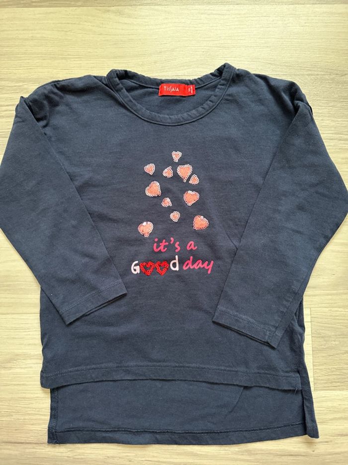 Teeshirt manches longues taille 5 ans de marque Tissaia. Très bon état, pas de tache ni trou constaté. #emireims5ans