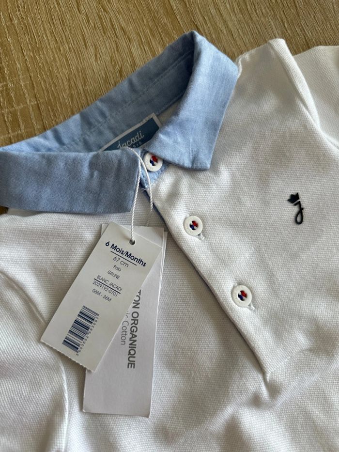 Polo blanc manches courtes en 6 mois de la marque Jacadi. Neuf, encore étiqueté. Valeur magasin : 25€ Prix ferme. #emireims6mois