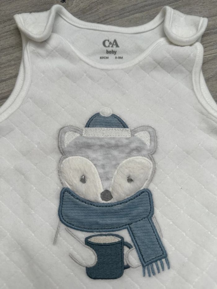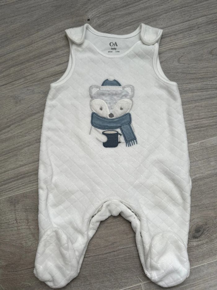 Salopette velours avec pieds en 2-3 mois C&A. Ouverture à pressions entre jambes et épaules. Très bon état, pas de tache ni trou constaté. #emireims3mois