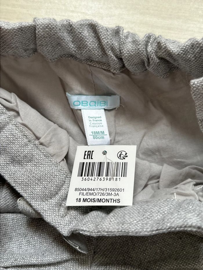 Short pailleté gris taille 18 mois de la marque Obaïbi. Réglable à la taille par élastique. Neuf, encore étiqueté. #emireims18mois