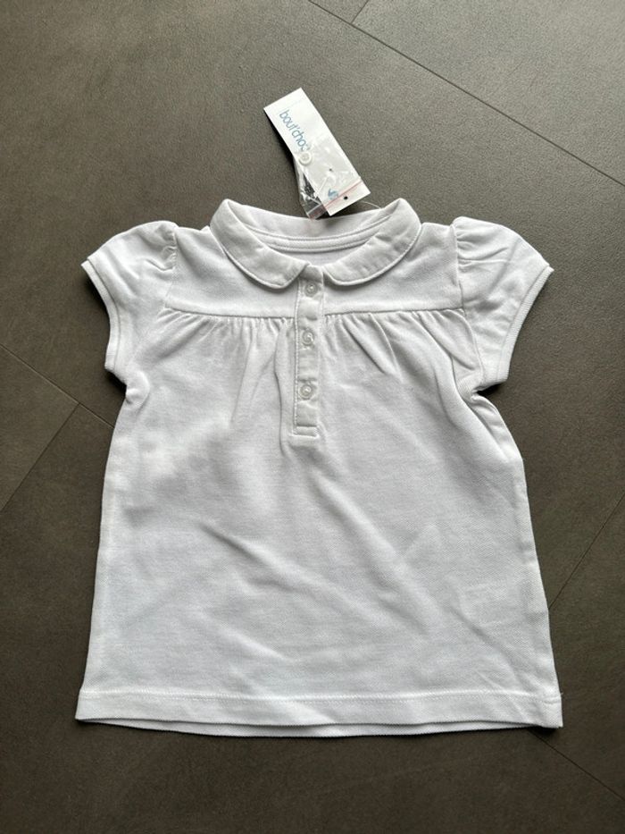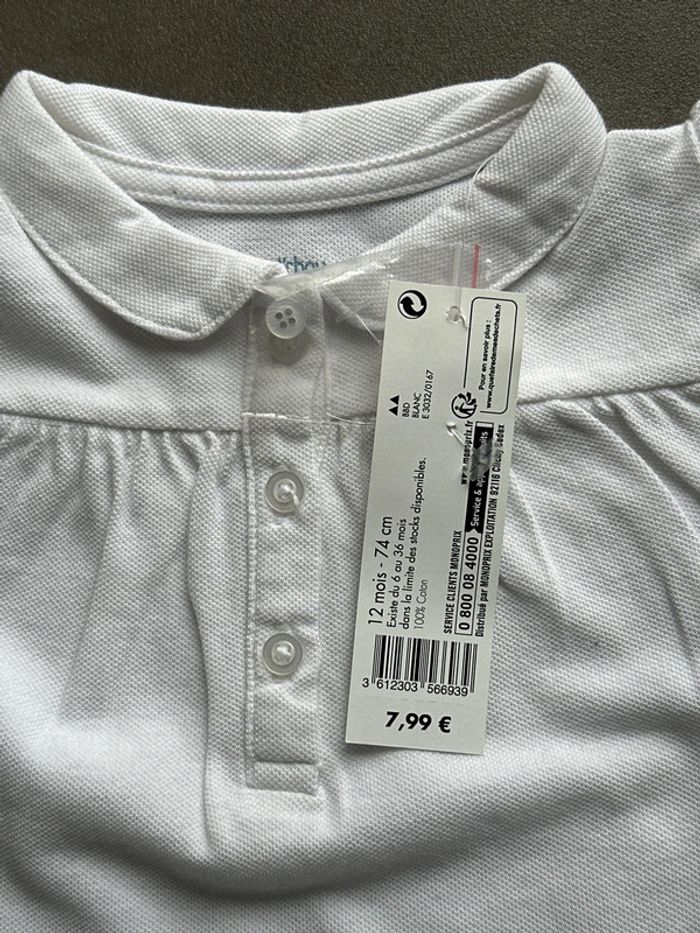 Polo blanc manches courtes en 12 mois Boutchou. Neuf, encore étiqueté. #emireims12mois