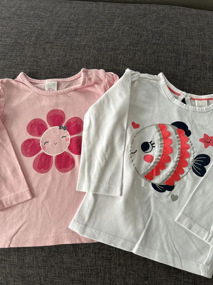 Lot de 2 tee-shirts manches longues en 12 mois C&A. Très bon état, pas de tache ni trou constaté. #emireims12mois