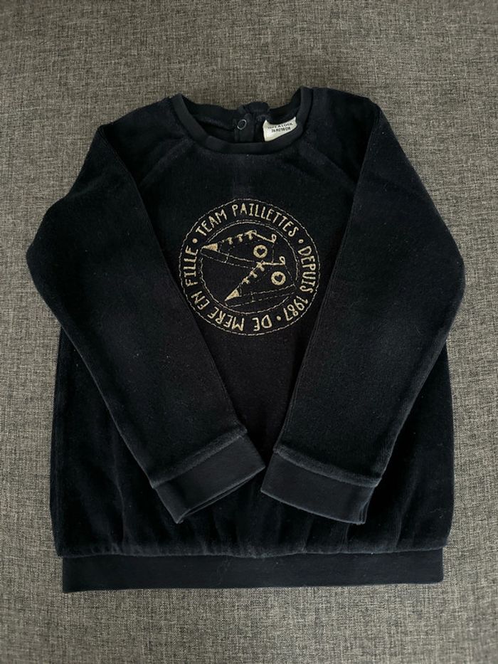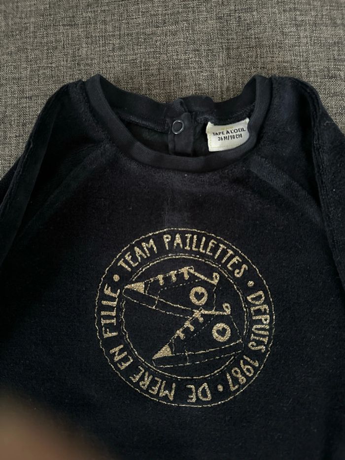 Sweat en velours bleu nuit en 3 ans Tape à l’œil. Très bon état, pas de tache ni trou constaté. #emireims3ans