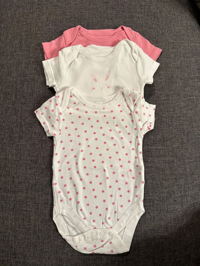 Lot de 3 bodies manches courtes en 6 mois Primark. Très bon état, pas de tache ni trou constaté. #emireims6mois