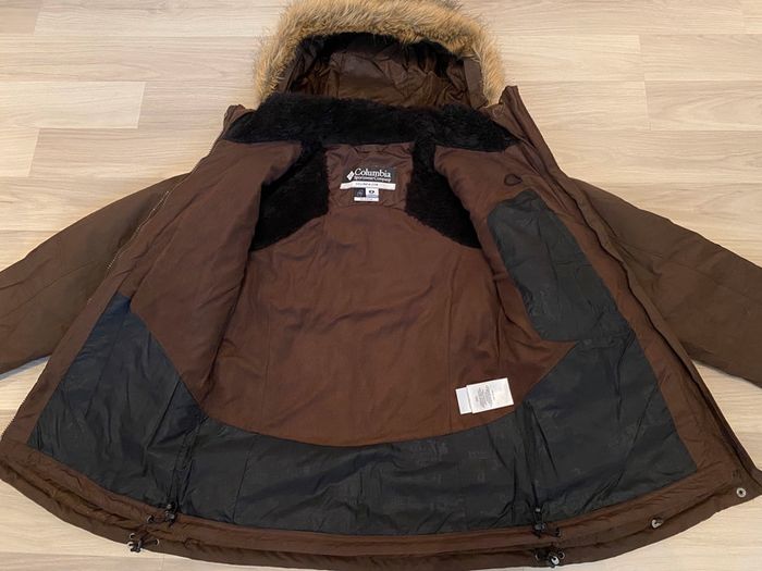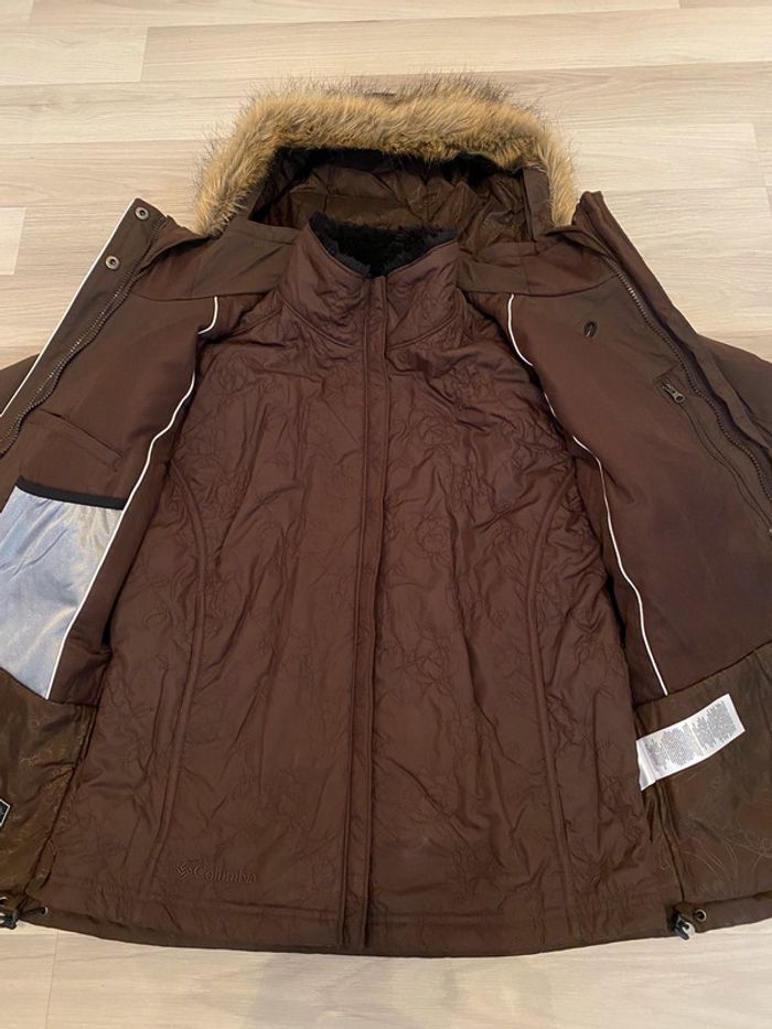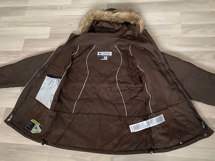 Manteau 2 en 1 de la marque Columbia, modèle femme, couleur marron. Nombreuses poches. Taille M. Doublure, capuche et moumoute de la capuche amovibles ! Très bon état. #emireimsfemme