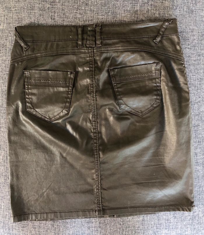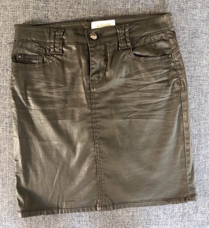 Jupe Etam matière type simili. Taille 36 (étiquette intérieure coupée). Longueur : 45 cm. Couleur marron. Très bon état. #emireimsfemme