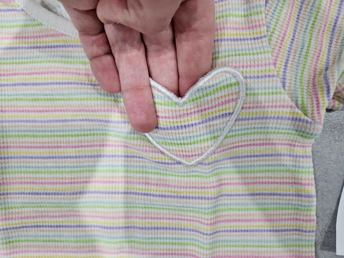 T-shirt multi couleurs rayé pour bébé fille taille 6/9 mois. Petite poche ne forme de cœur au niveau du cœur. S'attache par un bouton dans le dos. Marque Primark. En excellent état. N'hésitez pas à regarder mes autres ventes, j’essaye de les classer au mieux. Je ne compose pas moi-même les lots pour vous laisser libre choix.