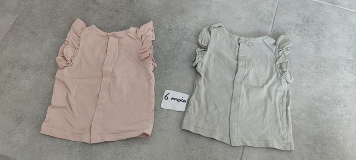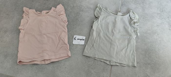 Lot de 2 t-shirts rose et vert pâle pour bébé fille taille 6 mois.