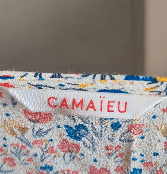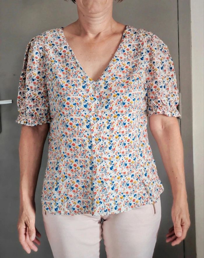 Blouse manches courte col v avec motif et boutons devant Marque camaïeu Taille 38 #justbln_M
