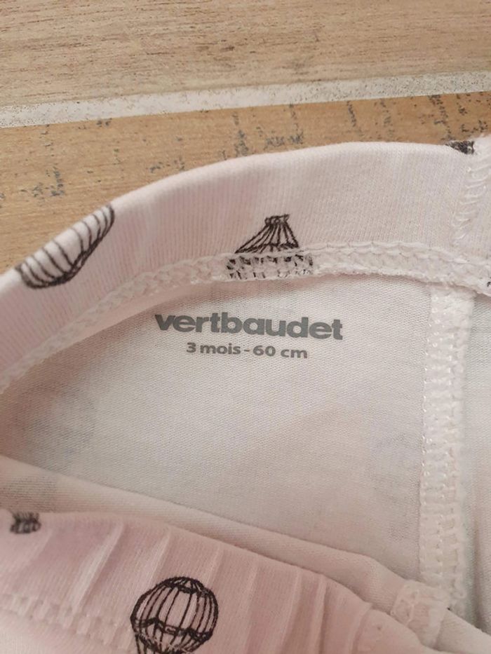 Tunique avec body intégré, couleur abricot et legging blanc Marque Vertbaudet Taille 3 mois