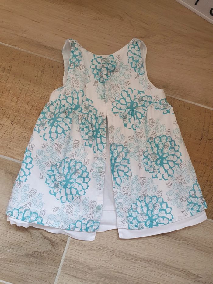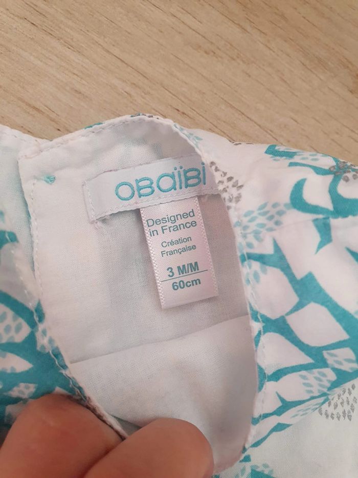Robe légère blanche motifs turquoise Marque Obaibi Taille 3 mois #manou30340_bébé3mois