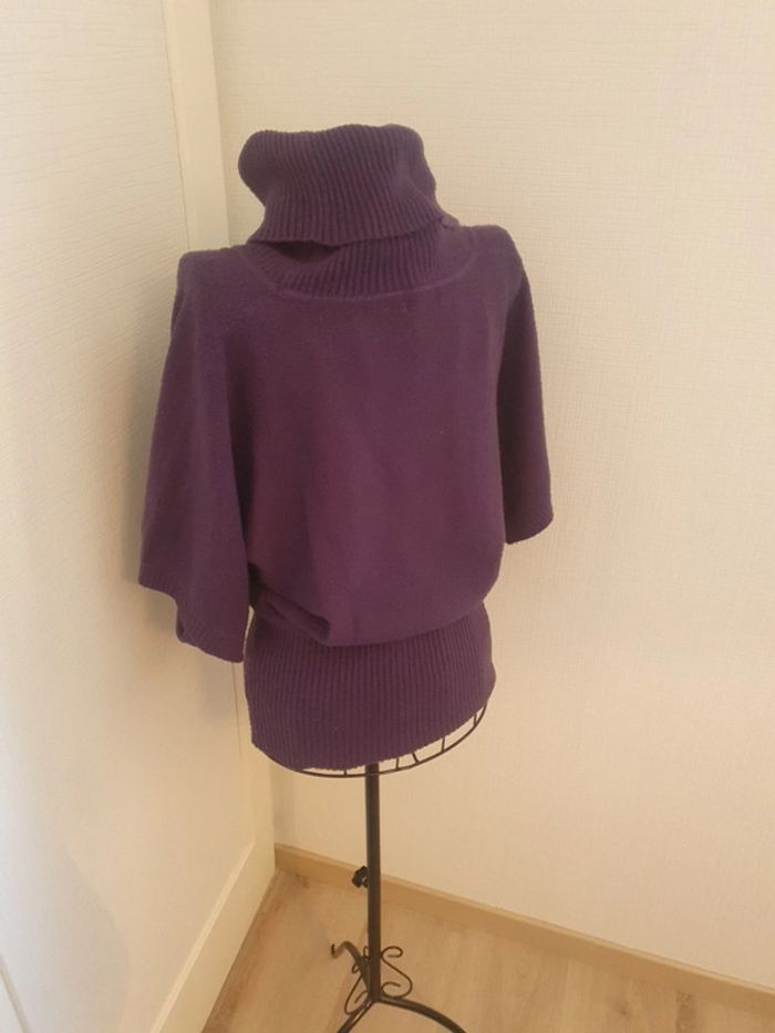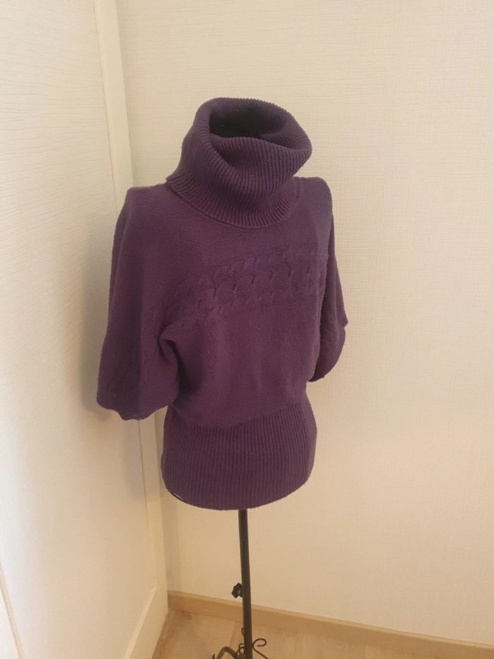 Pull violet col roulé et manches chauve-souris Un peu bouloché du à la matière