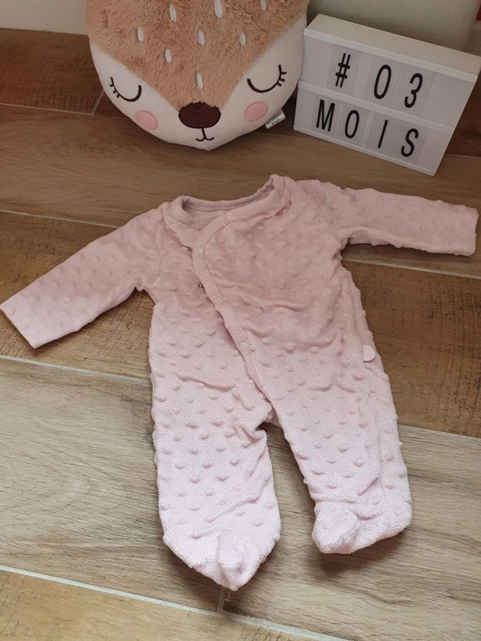 Pyjama en velours rose pâle Marque Kaloo Taille 3 mois #manou30340_bébé3mois