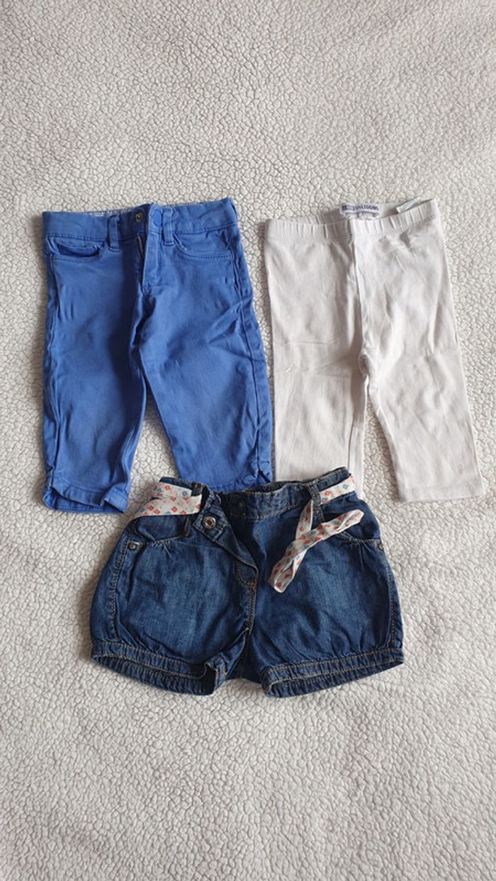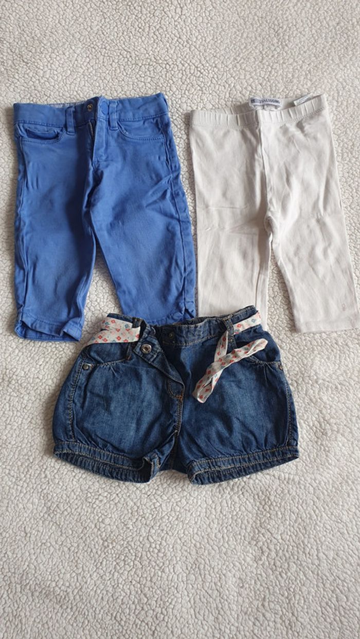 Lot : - Un short taille 23 mois - Pantacourt 3/4 bleu, taille 23 mois - Legging 3/4 blanc, taille 23 mois Très bon état