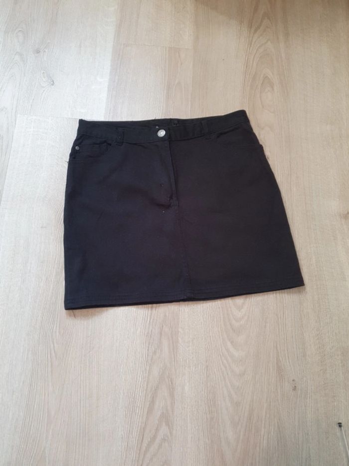 Jupe courte en jean stretch noir Taille 38 Trou à l'intérieur au niveau de l'étiquette, mais non visible de l'extérieur