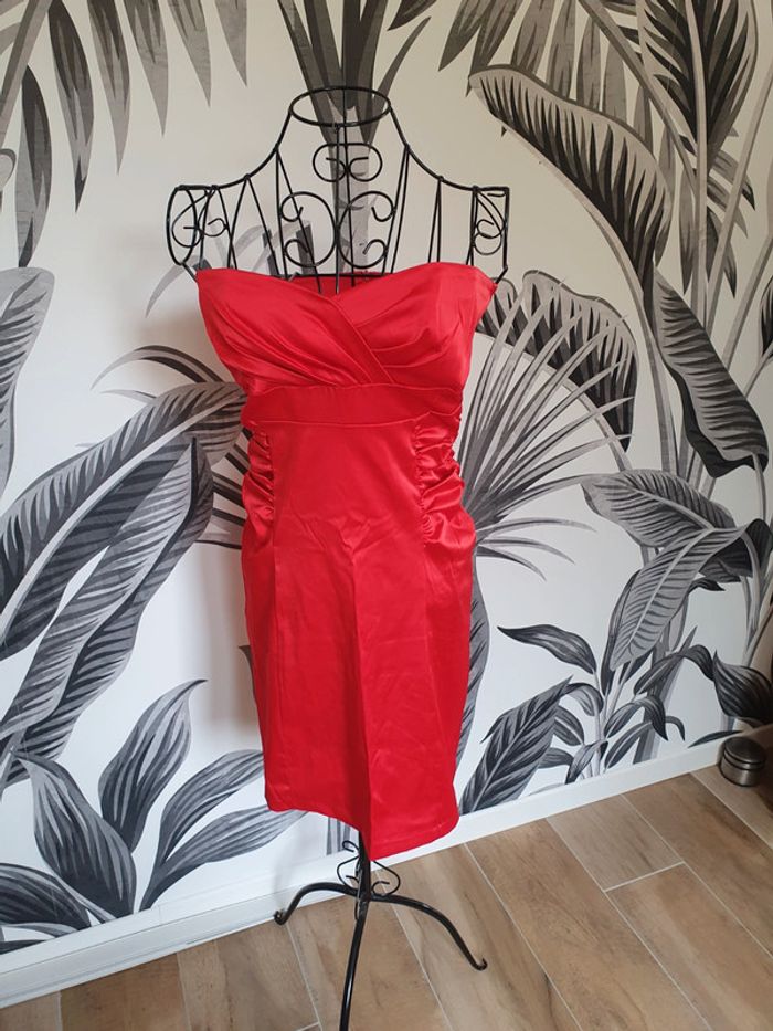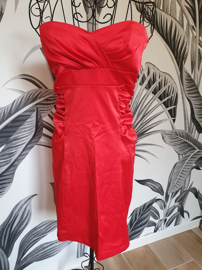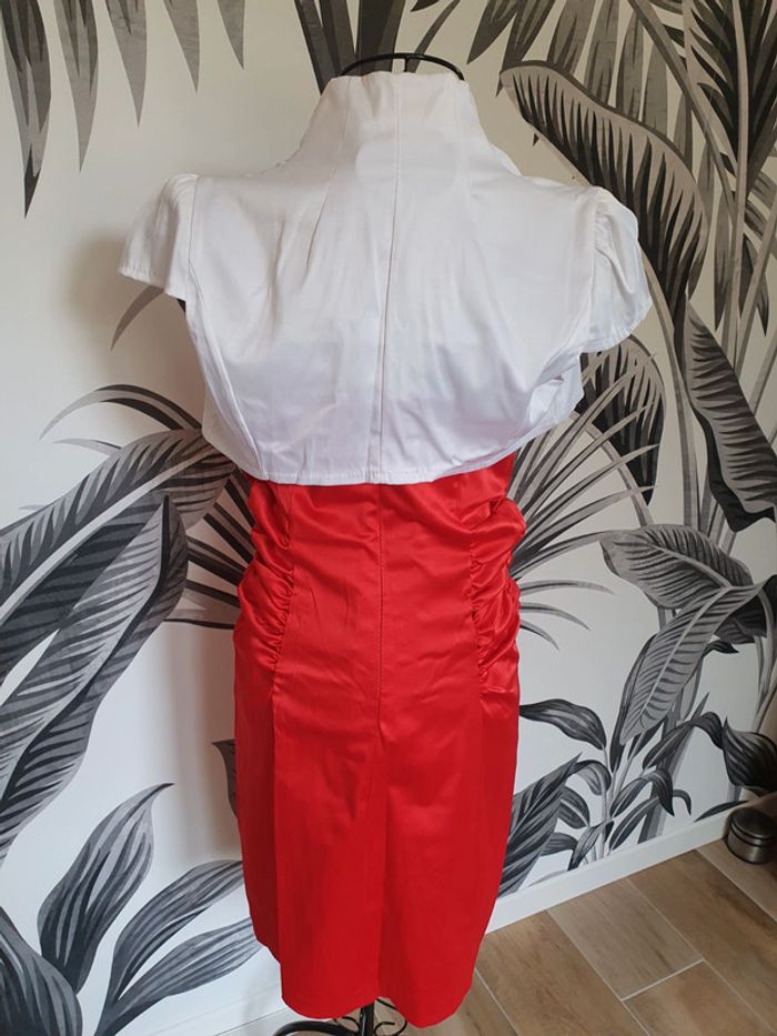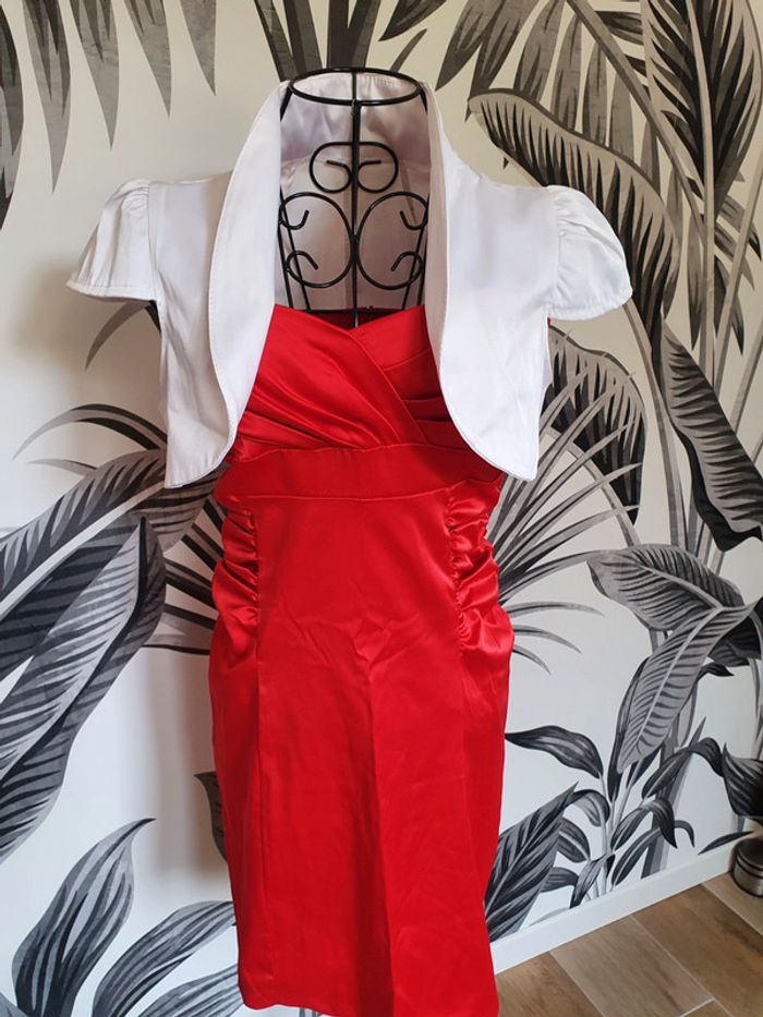 Ensemble robe bustier rouge et boléro blanc Tissu soyeux Taille M Portée une fois