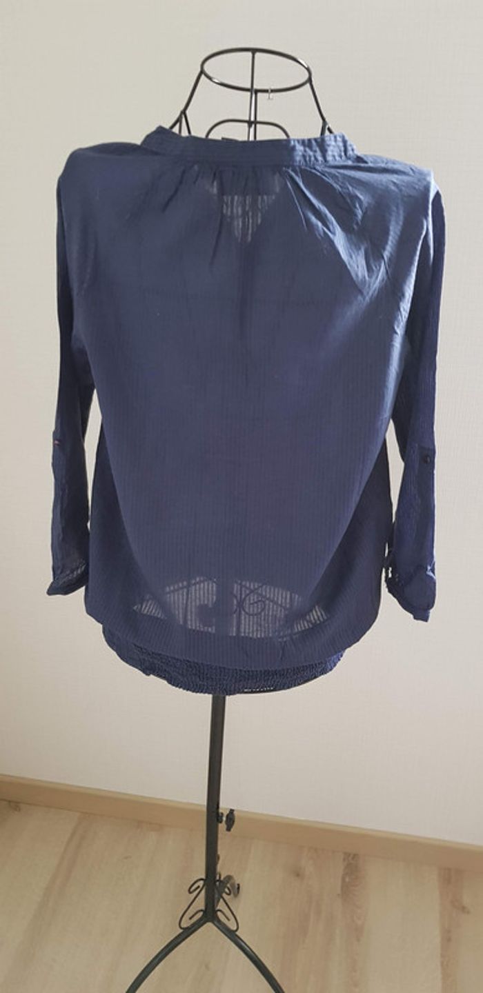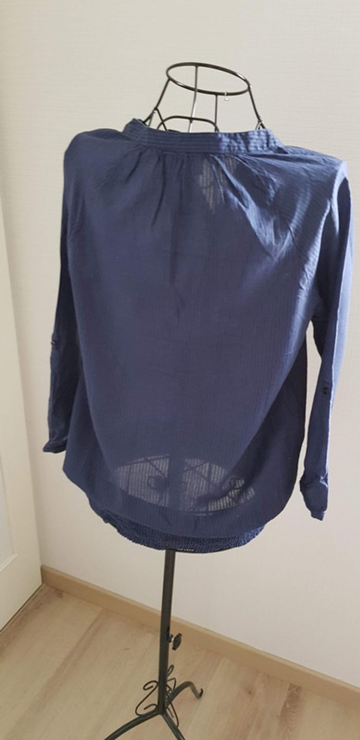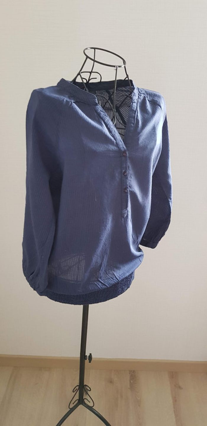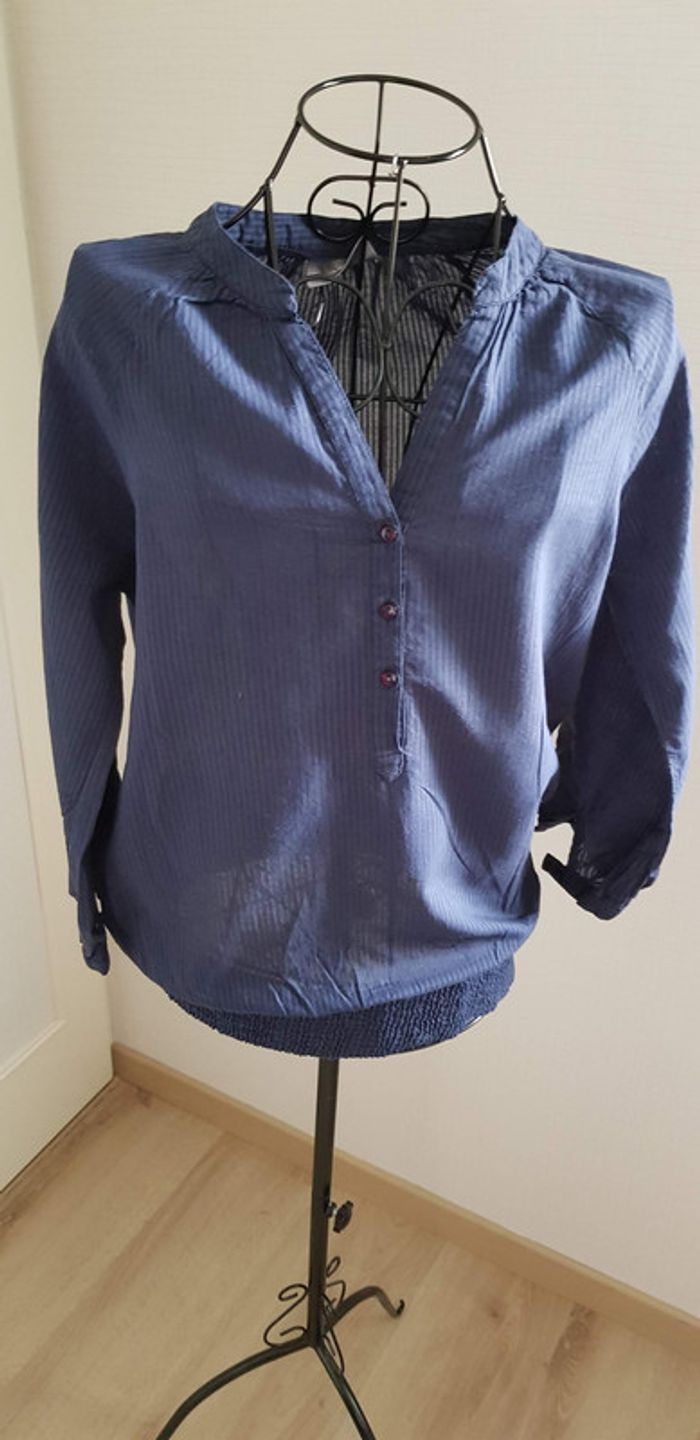 Blouse Bleu rayée Col tunisien en V avec bouton Manches longues pouvant être mise en 3/4 par bouton Très peu portée