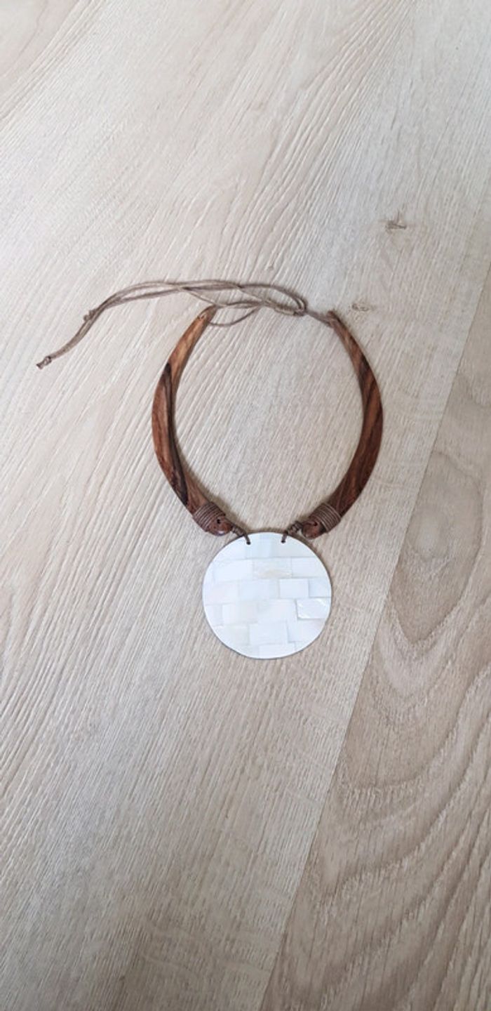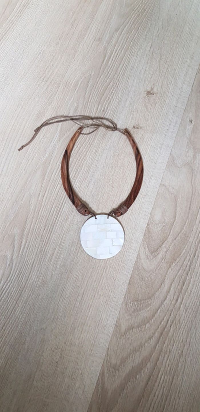 Collier en bois et effet nacre Longueur réglable par lien