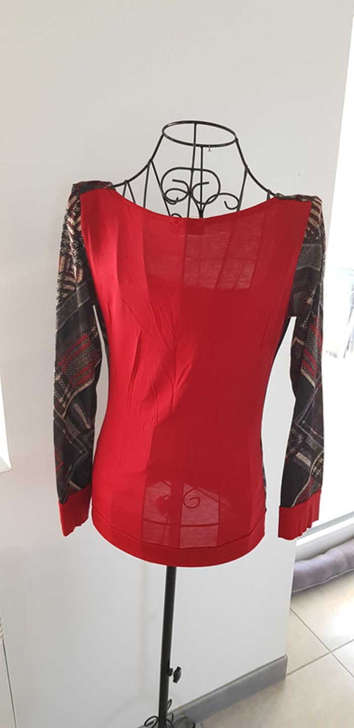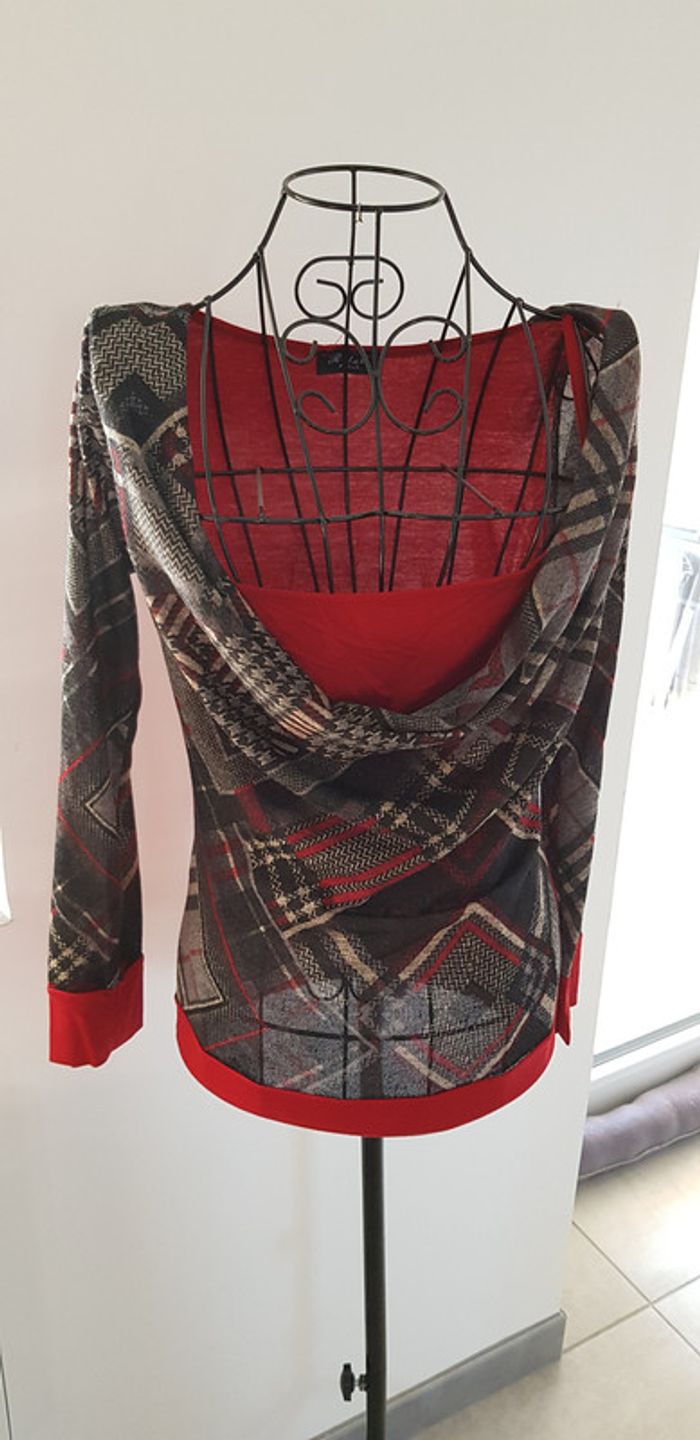 T-shirt manche longue décolleté Effet superposition débardeur rouge et t-shirt manches longues décolleté motif carreaux écossais gris Neuf, jamais porté, juste lavé