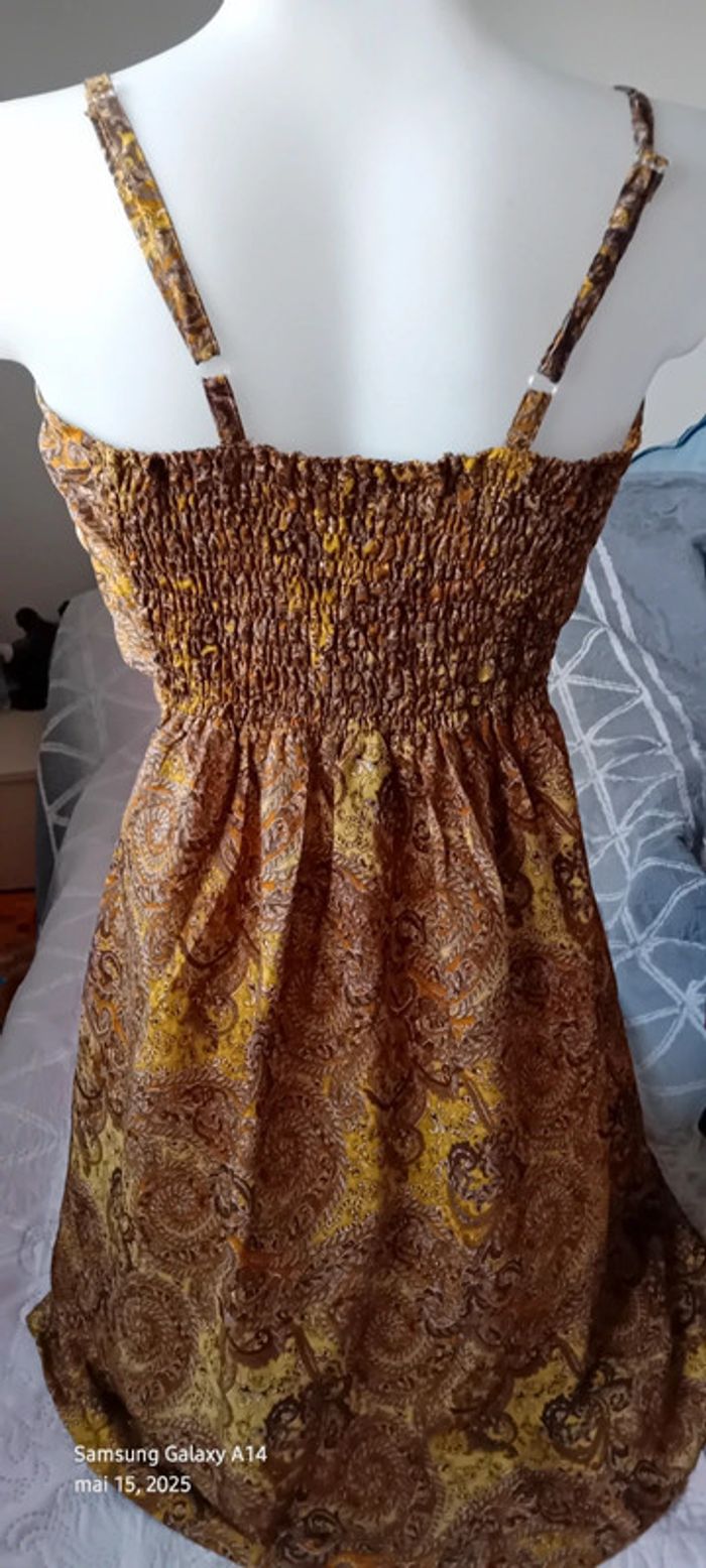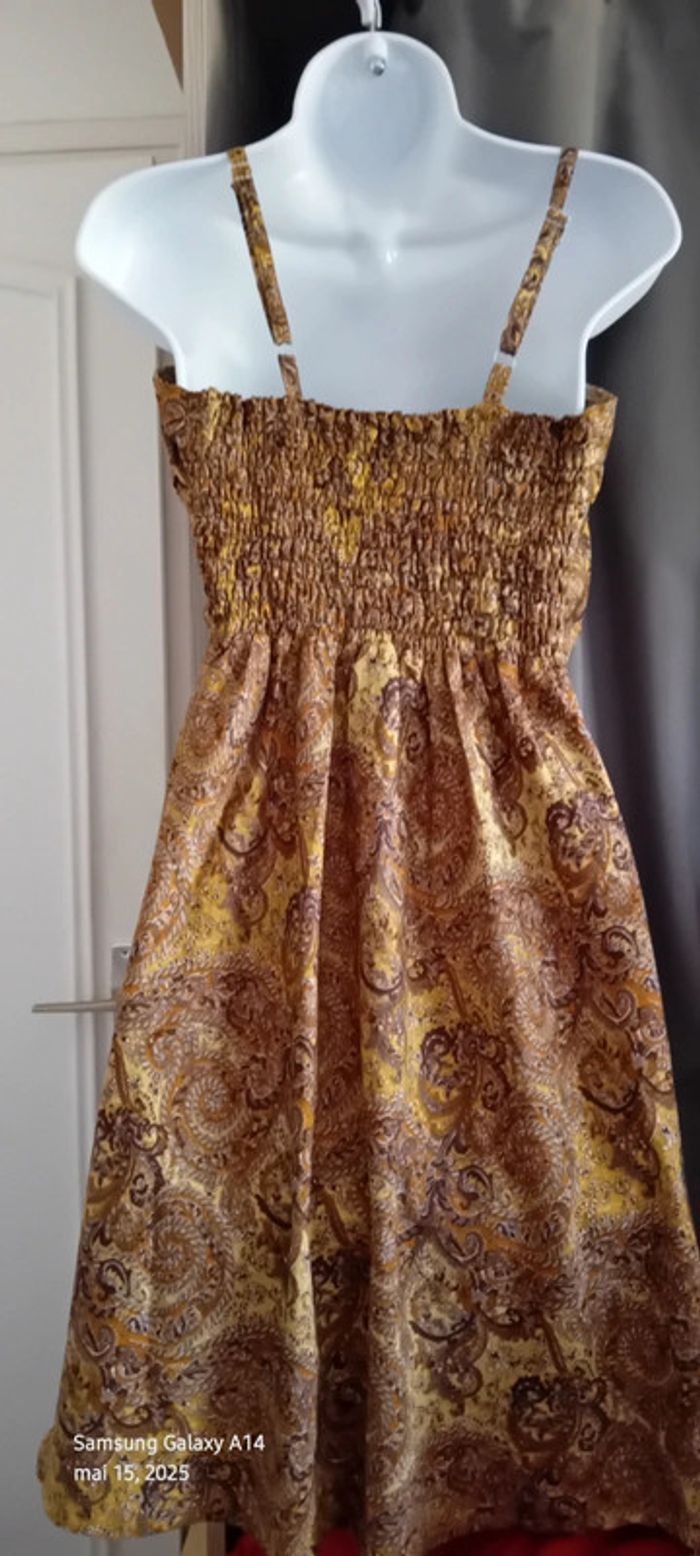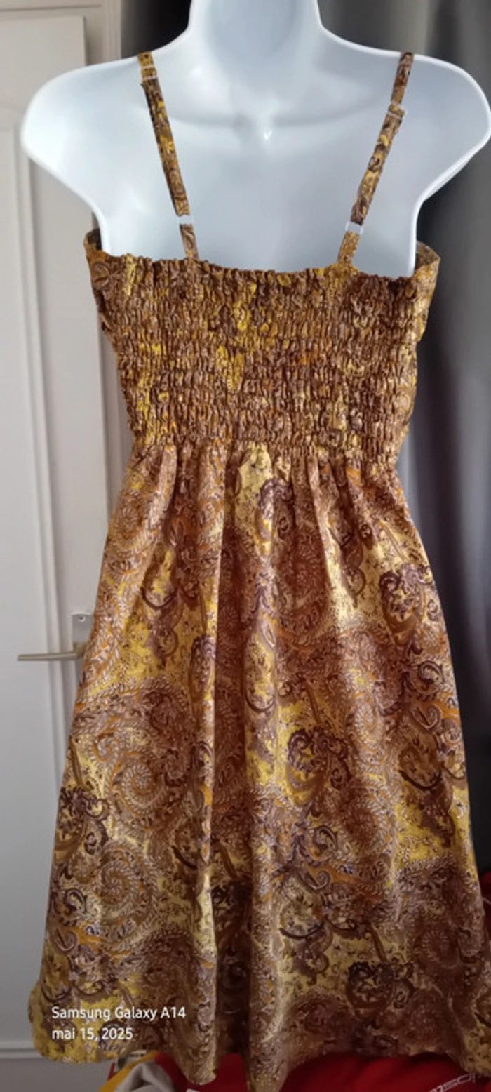 Robe courte fines bretelles motif indien arabesques doré femme 38 made in india - photo numéro 8