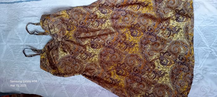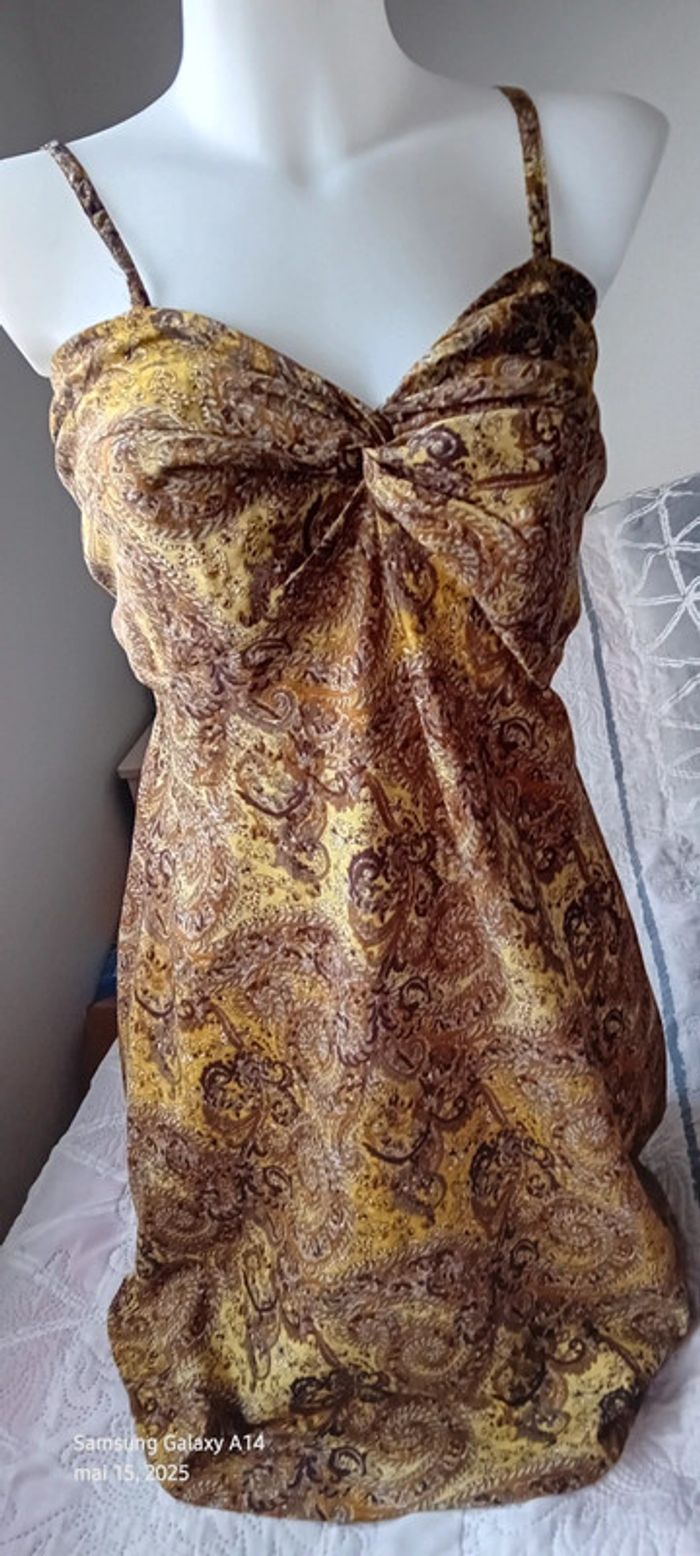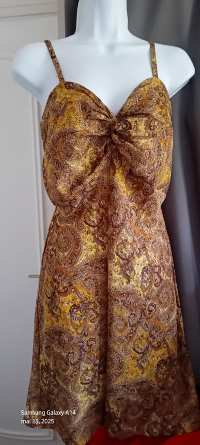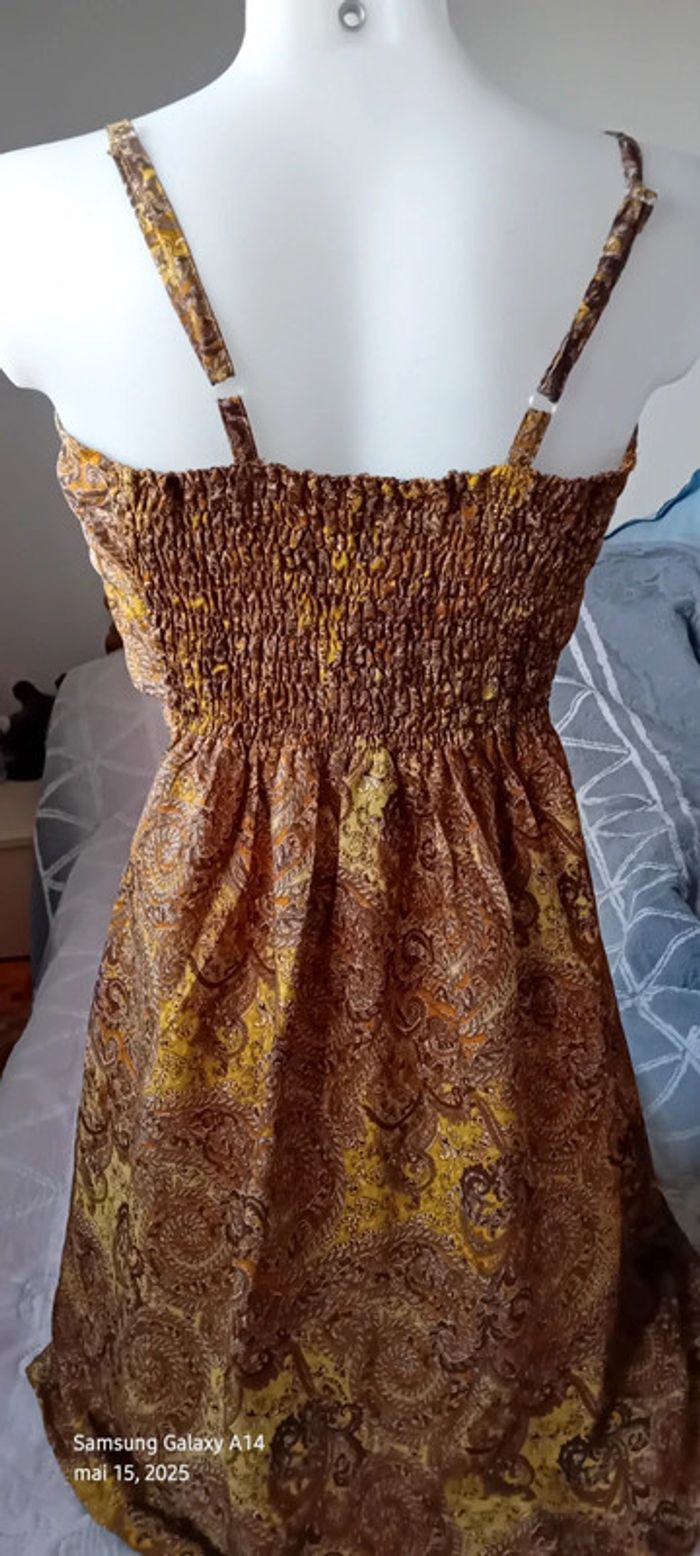 Robe courte fines bretelles motif indien arabesques doré femme 38 made in india - photo numéro 8