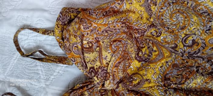 Robe courte fines bretelles motif indien arabesques doré femme 38 made in india - photo numéro 15