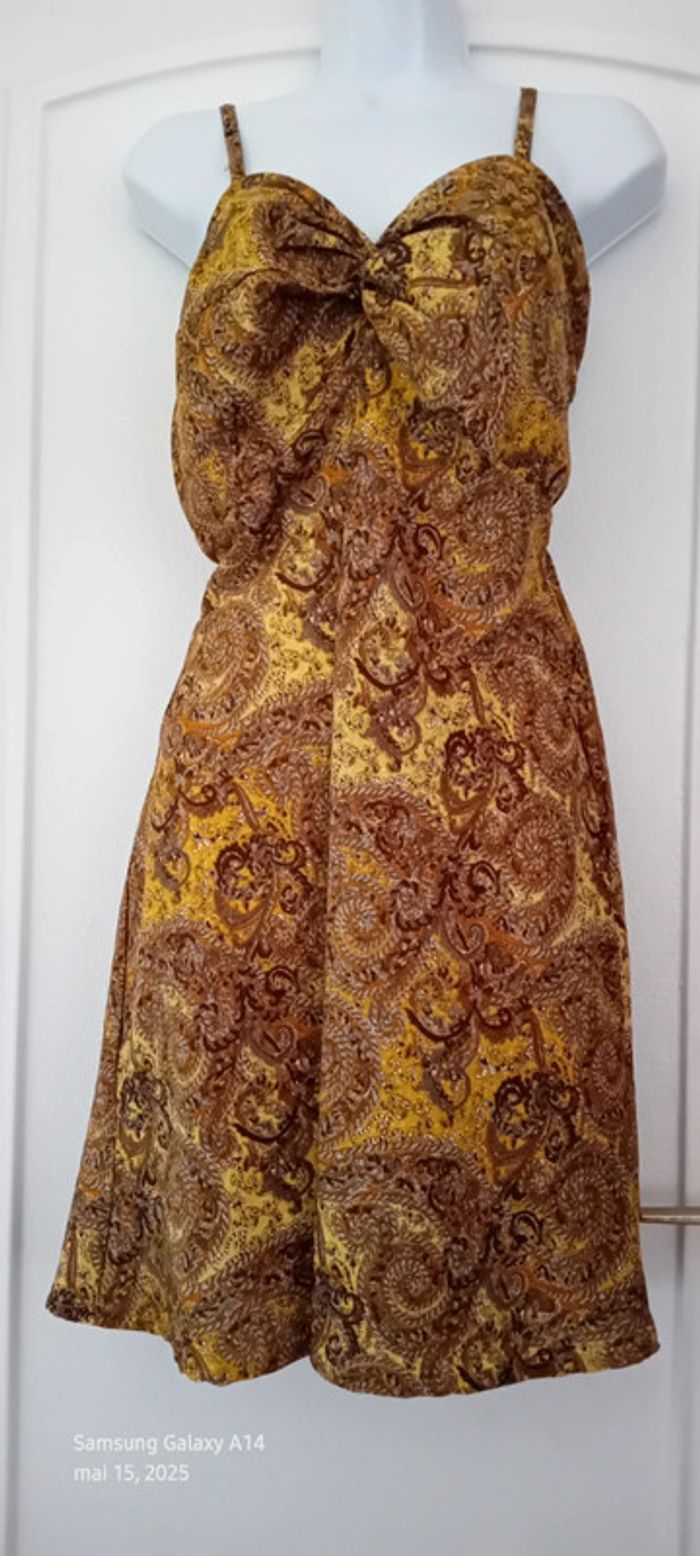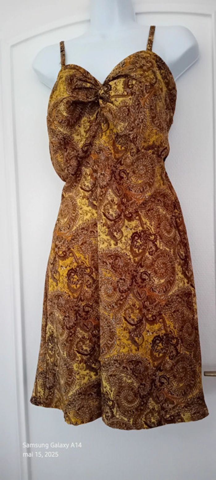 Robe courte fines bretelles motif indien arabesques doré femme 38 made in india - photo numéro 5