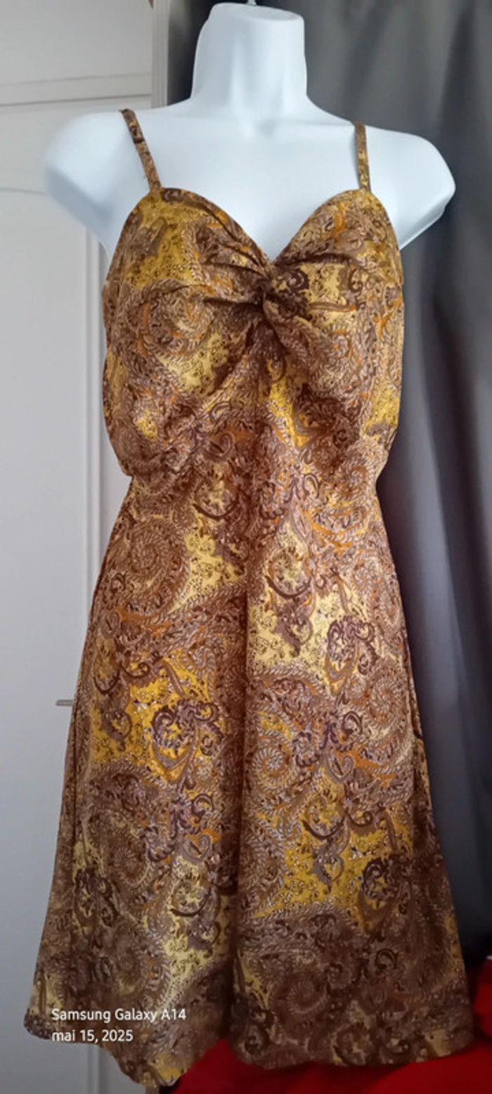 Robe courte fines bretelles motif indien arabesques doré femme 38 made in india - photo numéro 1