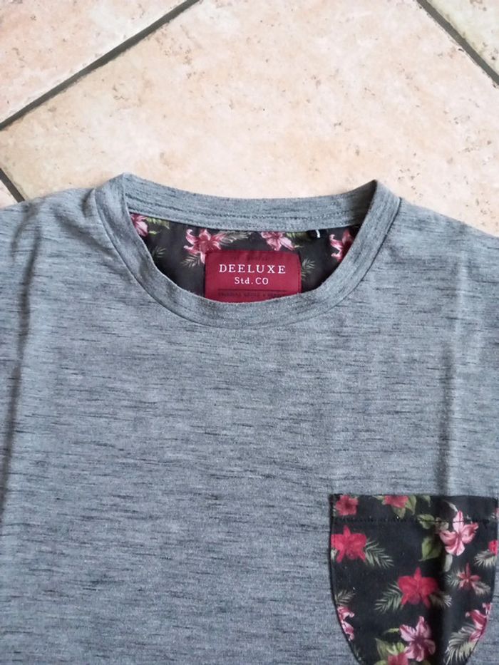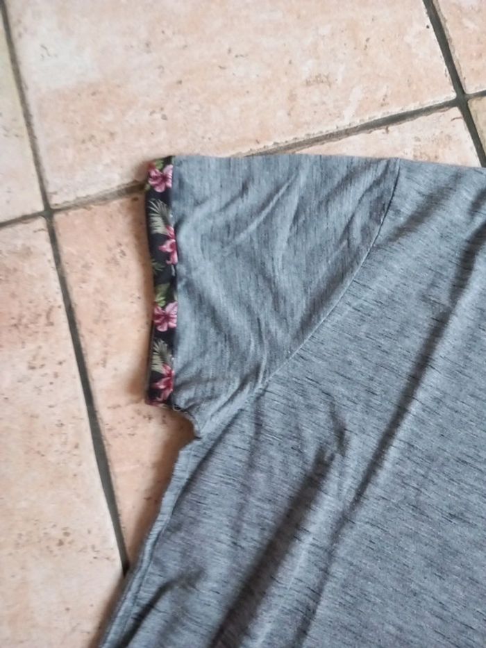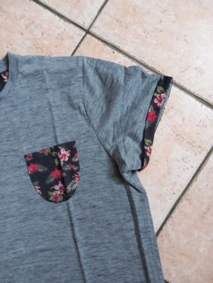 Joli Tee-shirt gris chiné avec poche fleurie et bord des épaules