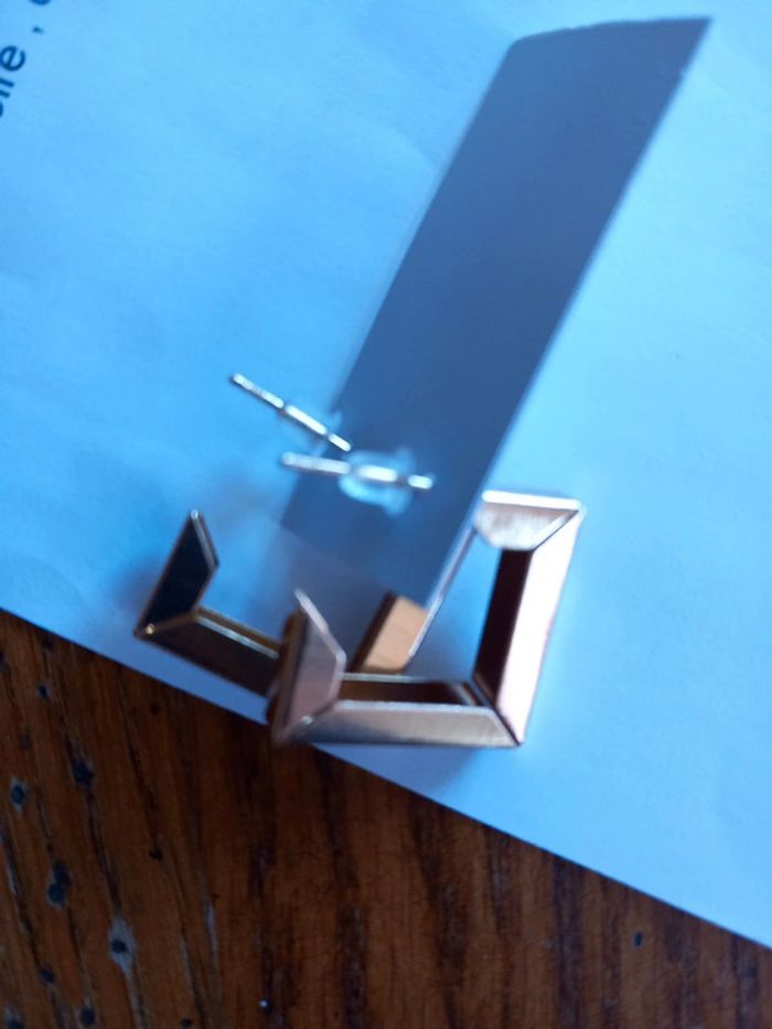 🌸boucles d oreilles carré Neuf doré fantaisie - photo numéro 2