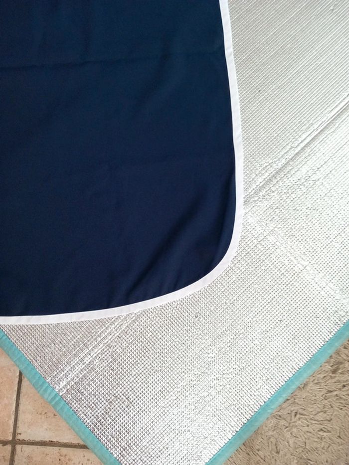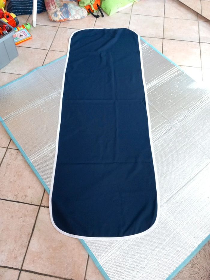 Bleu marine avec liseré blanc autour.. Chemin de table ou autre selon vos souhaits. Longueur 170 cm Largeur 60 cm