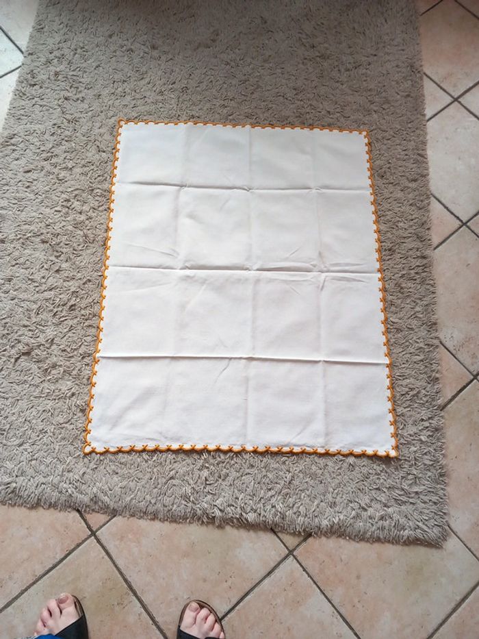 Broder sur le tour. Dimensions 72 cm X 92 cm
