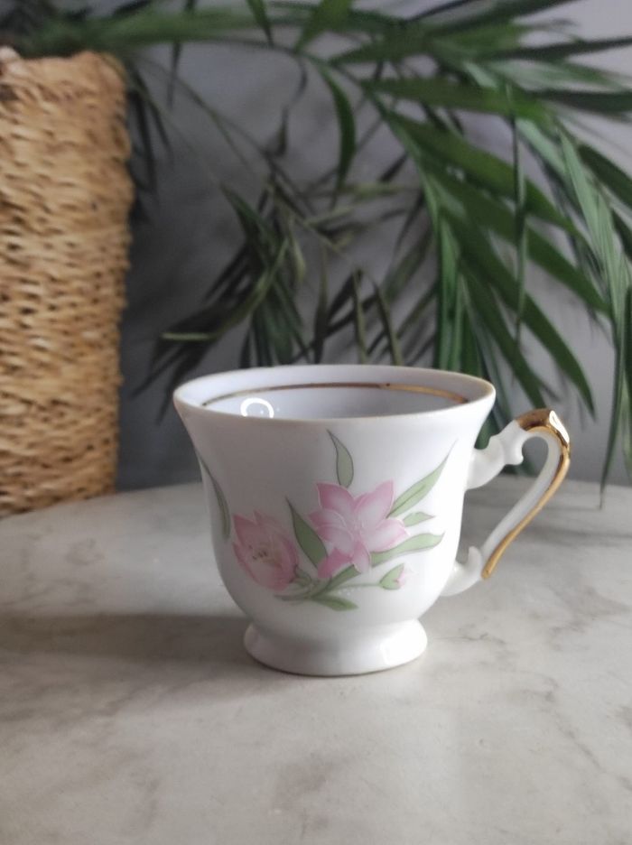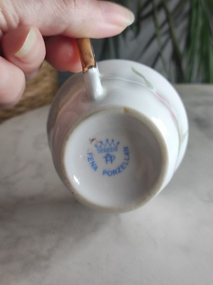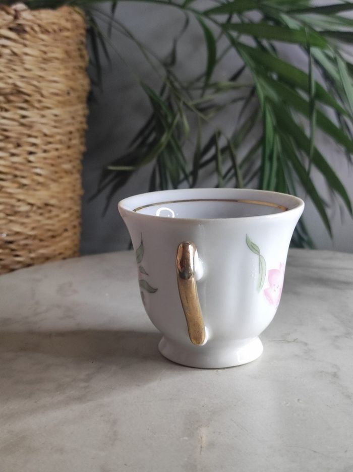 Magnifique tasse à café vintage fena porzellan en porcelaine fine. Liseré doré et déco floraux. Dimensions H 5,5 cm x D 6,6 cm