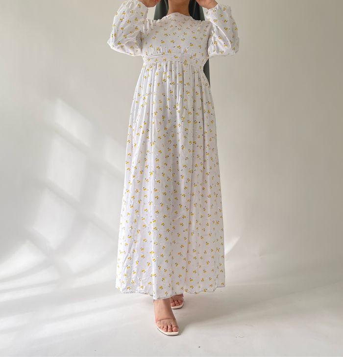 Robe longue blanche à fleurs jaunes – style frais et printanier 🌼