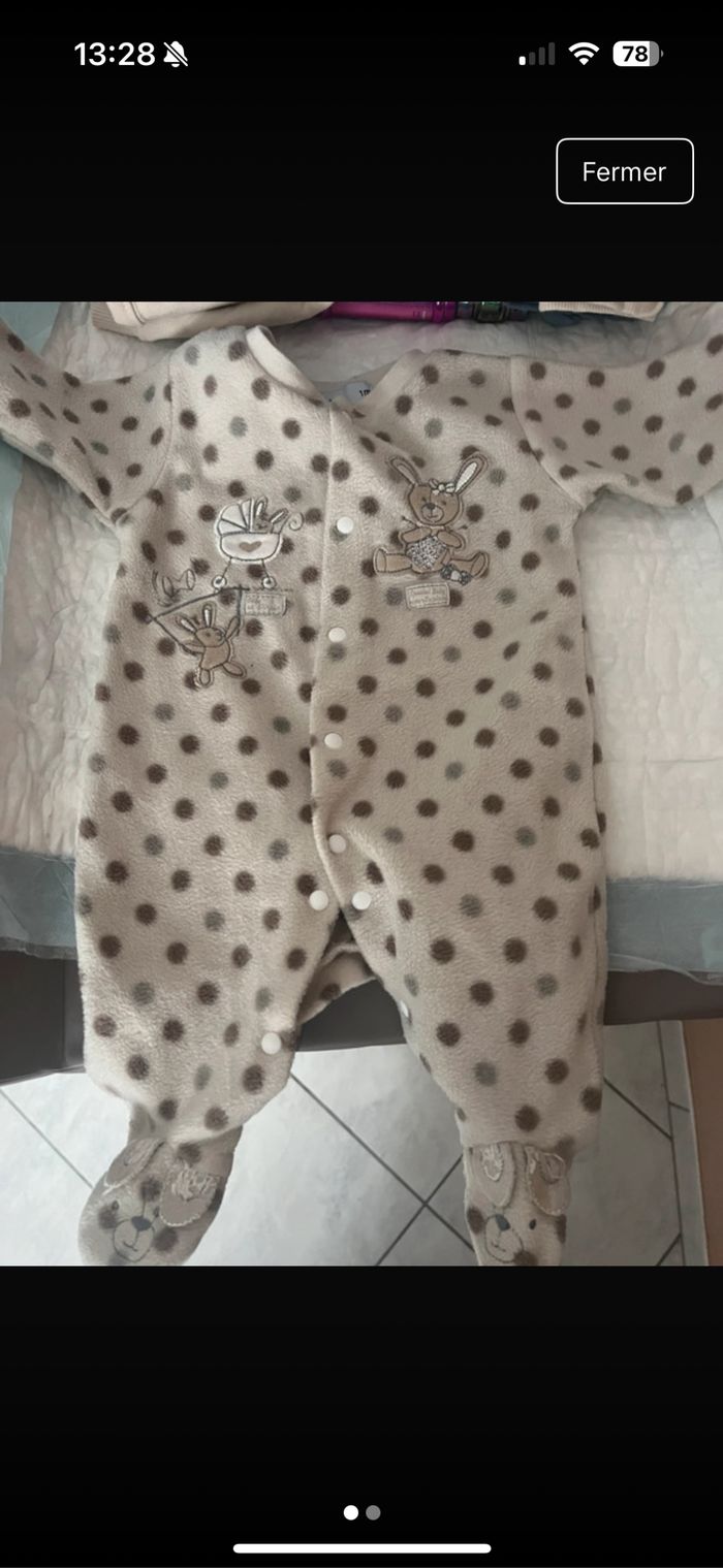 Pyjama bébé, bien chaud, taille 1 mois, porté quelques fois mais ne présente aucun défauts