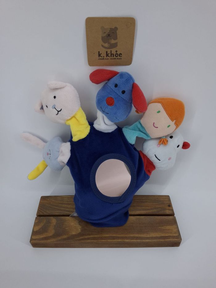 - Gants marionnettes "OXYBUL" bleu avec personnages et miroir, favorise l'éveil des sens des touts petits.