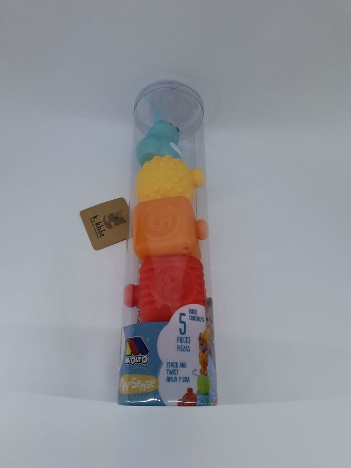 Jouet sensoriel avec un set de 5 figurines de différentes couleurs, qui stimulent le développement sensoriel du bébé avec différentes textures. Améliore la coordination œil-main en faisant ses premières constructions, car les figurines s'emboîtent entre elles et ils peuvent jouer en apprenant différentes couleurs.