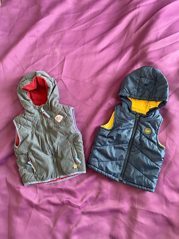 2 doudounes sans manches 9 mois