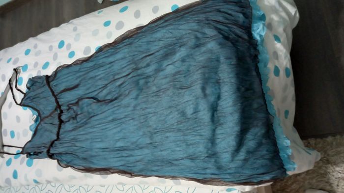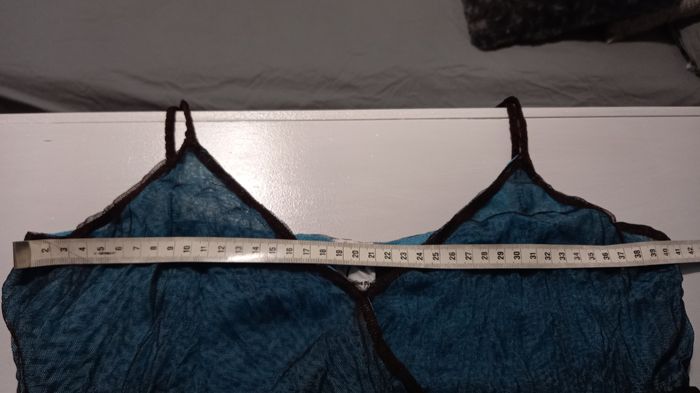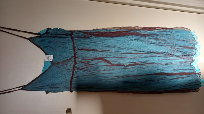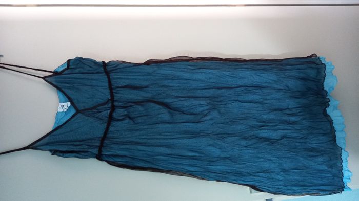 Robe Jacqueline RIU Dentelle noire doublé bleu Très légère pour la plage Taille 2 - 38/40 Longueur 105 cm depuis le haut de la bretelle #T38_imoddeco #T40_imoddeco