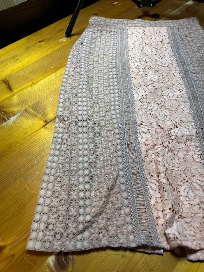 #justawinkdsvetementsfemme38 Marque : Mango Taille : 38 Doublure beige plus courte 46 cm Longueur de la jupe 71 cm Les couleurs ne sont pas du tout réalistes, la jupe est d’un vieux rose et rose légèrement plus foncé comme sur la première photo